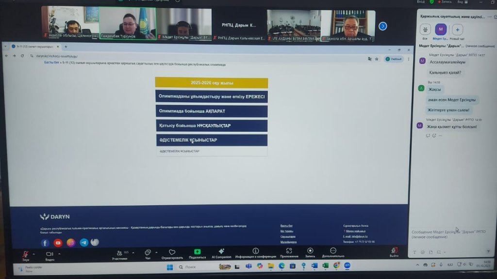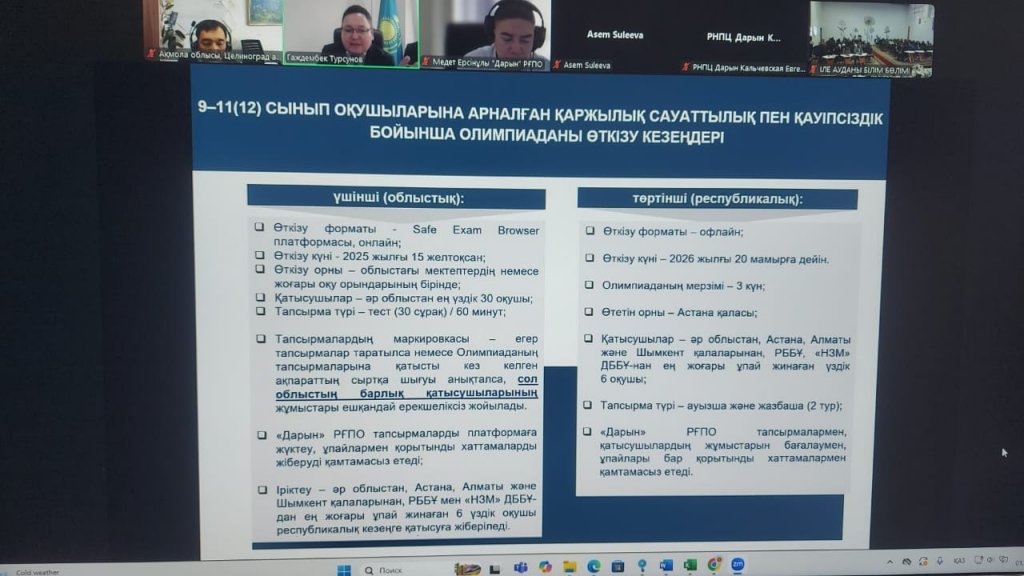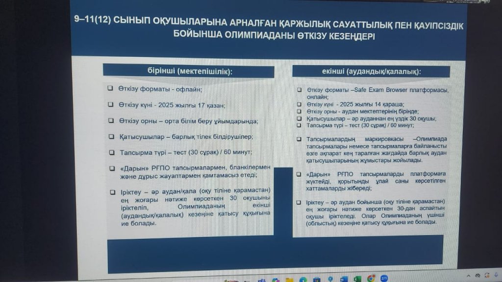 Бүгін, 01.10.2025 күні сағат 14:00-де Қаржылық сауаттылық және қауіпсіздік бойынша олимпиаданы ұйымдастыру және өткізу бойынша «Дарын» РҒПО ZOOM конференция өтті!