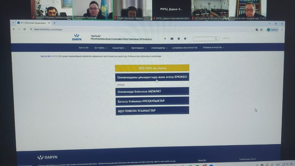 ZOOM конференцияға өңірлік «Дарын» орталығымен аудандық (қалалық) білім бөлімі әдістемелік кабинет меңгерушісі және аталған Олимпиадаға жауапты Целиноград ауданы бойынша білім бөлімінің әдіскері С. К Тасыбай қатысты.