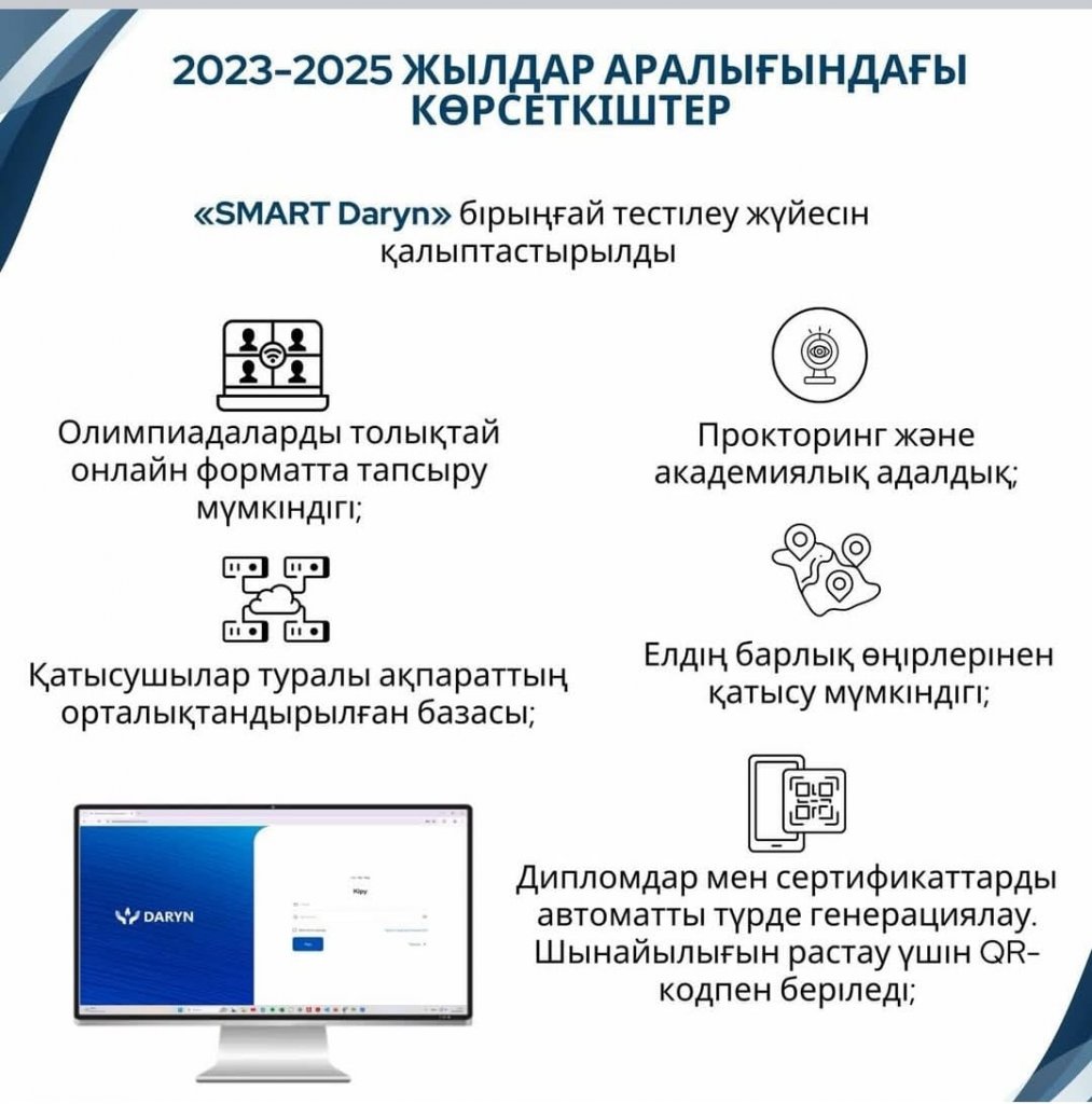 📊 600-ден астам республикалық және халықаралық зияткерлік іс-шара ұйымдастырылып, оған еліміздің 4,5 миллионнан астам оқушысы қатысты. Бұл – Қазақстандағы әрбір үшінші оқушының зияткерлік жарыстармен қамтылғанын көрсететін нақты көрсеткіш.